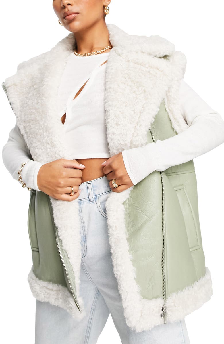 ASOS DESIGN Faux Shearling Gilet, Main, color, SAGE