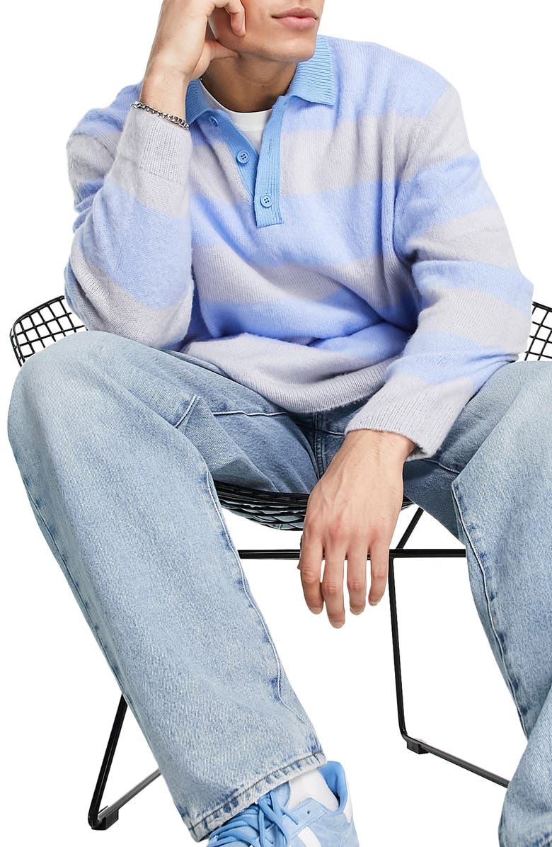 ASOS DESIGN Rugby Polo Sweater, Main, color, LIGHT BLUE