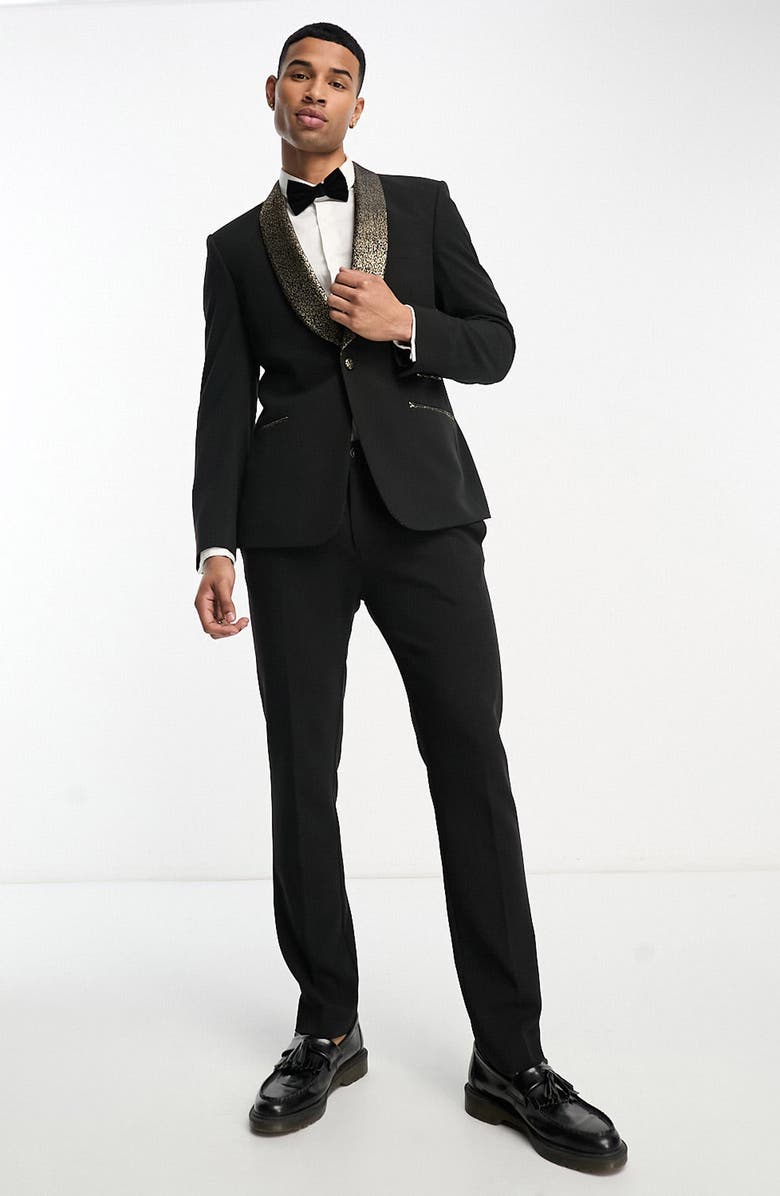 ASOS DESIGN Skinny Fit Tuxedo Jacket, Alternate, color, BLACK