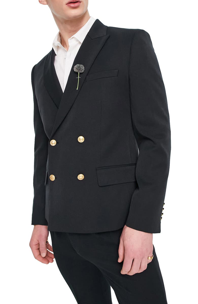 ASOS DESIGN Wedding Skinny Double Breasted Jacket, Main, color, BLACK