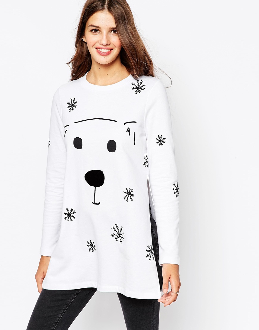 ASOS Holidays Sweatshirt With Flock Polar Bear