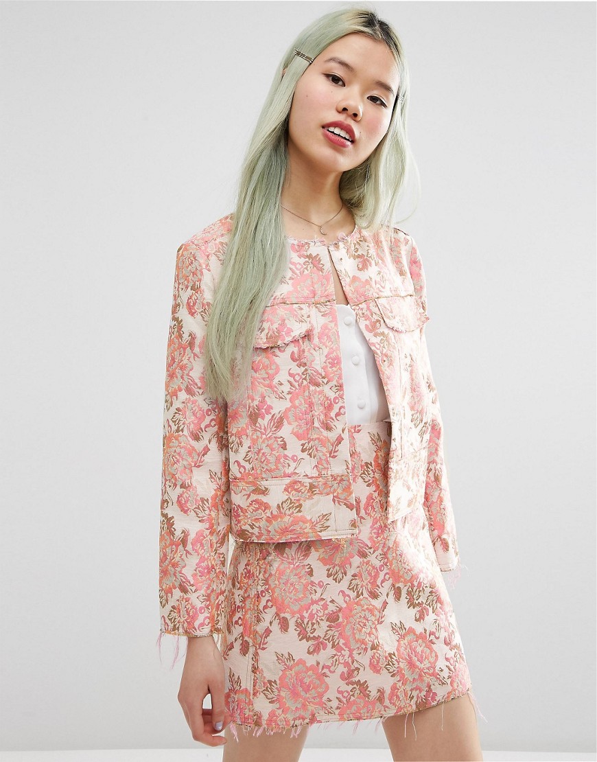 ASOS Jacquard Crop Blazer with Raw Edge Co-ord