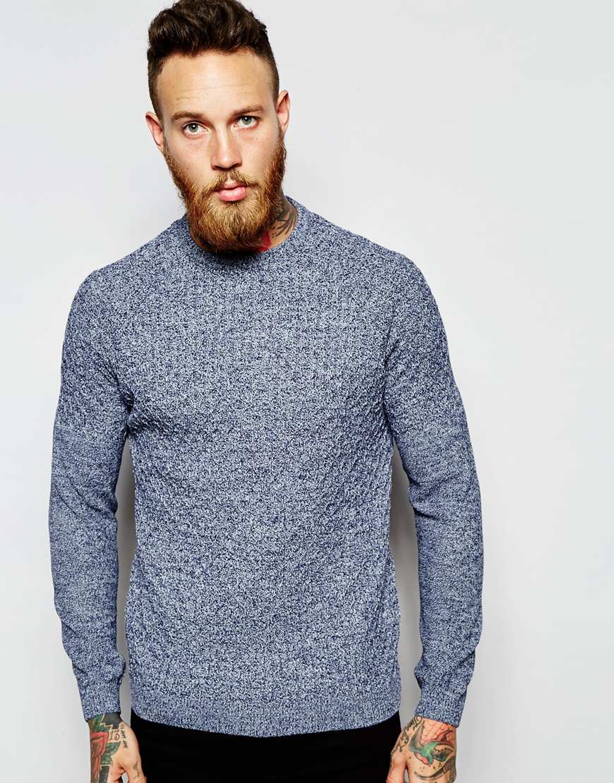 ASOS Lightweight Cable Knit Sweater in Navy Twist