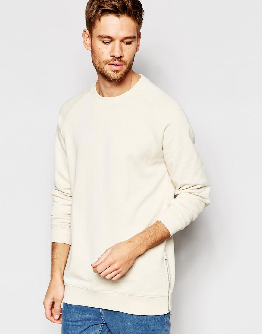 ASOS Longline Sweatshirt With Side Zips In Beige