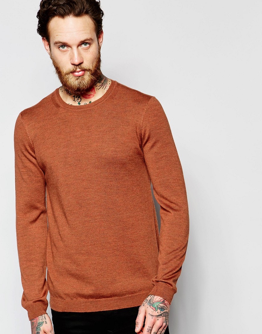 ASOS Merino Wool Crew Neck Sweater in Rust