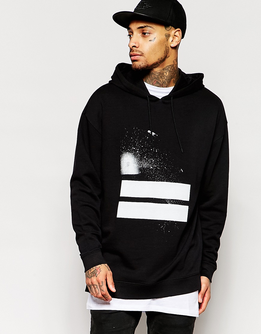ASOS Oversized Longline Printed Hoodie With Side Zips In Black