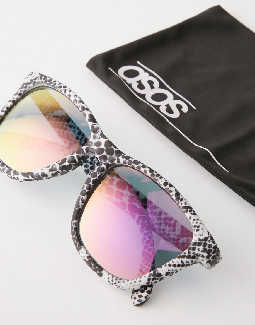 ASOS Square Wrap Style Sunglasses In Marble Look With Revo Lens