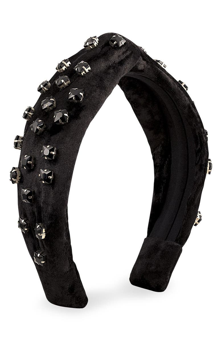 Autumn Adeigbo Esmee Crystal Velvet Headband, Main, color, Black