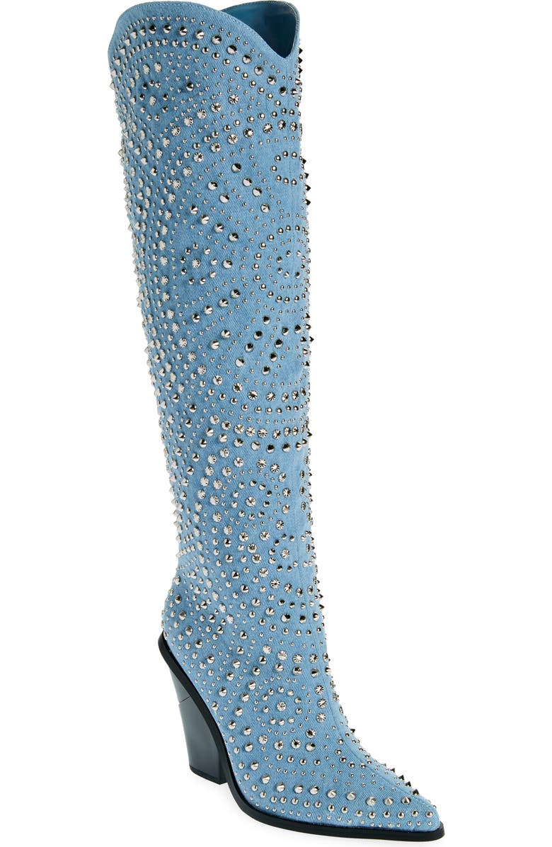AZALEA WANG Texas Denim Western Boot, Main, color, Blue