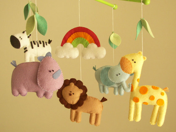 Baby crib mobile, safari mobile, animal mobile, felt mobile "Let's go to the Zoo" - Elephant, Lion, Giraffe, Zebra, Rhino