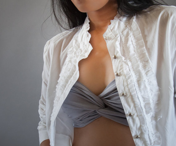 Bandeau Bra Pearl Grey-Twisted Tube Top-Stretch Jersey-Cover Up Skirt for Leggings Skirt-Tube Bra Top-Loop Scarf -Size XLarge