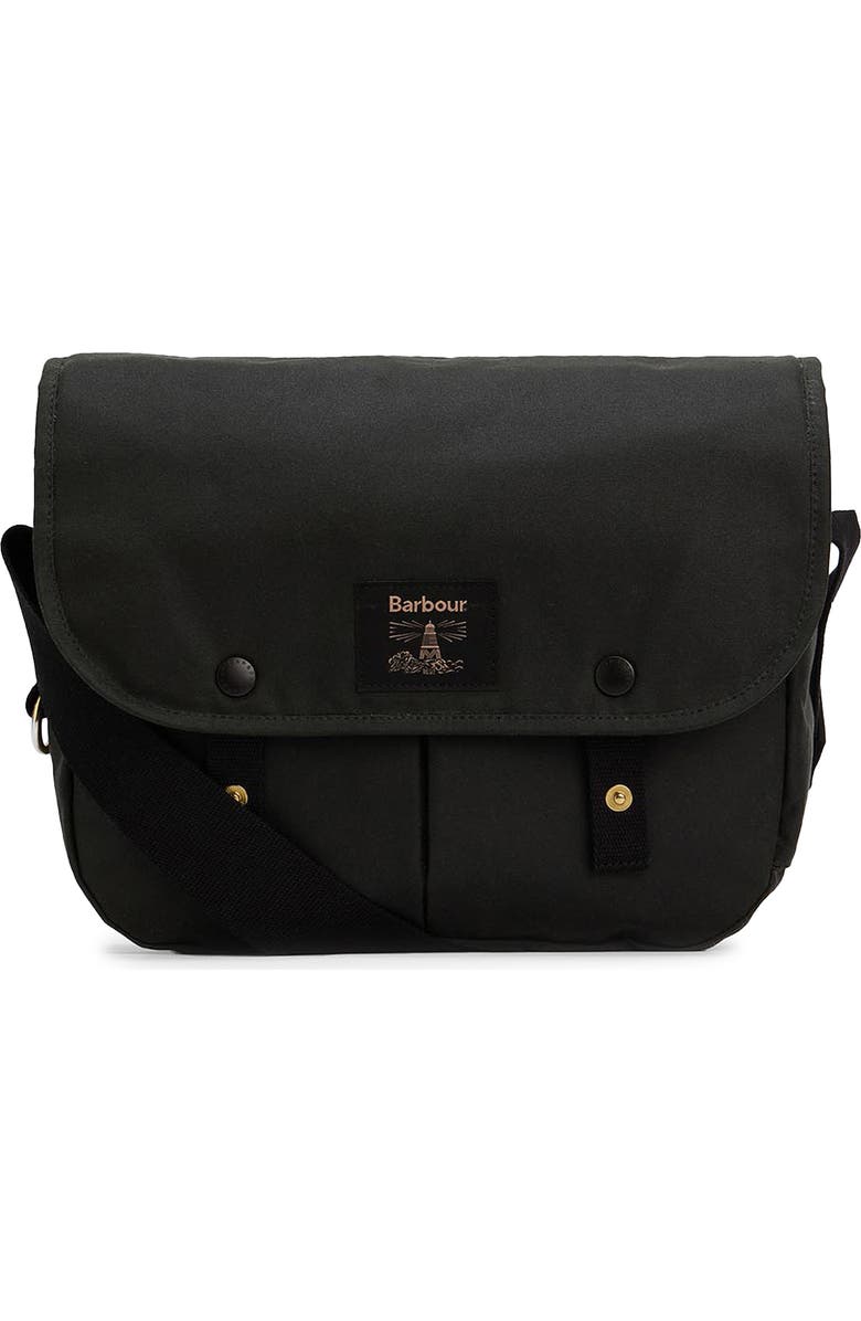 Barbour Field Riever Wax Cotton Crossbody Bag, Main, color, Sage