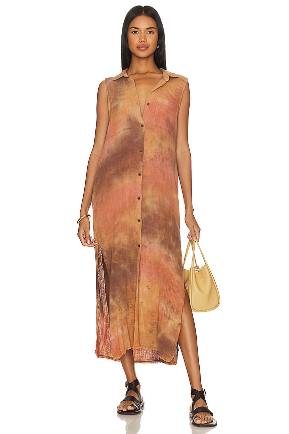 Bella Dahl Frayed Pocket Duster Midi Dress in Desert Clay Dye | REVOLVE