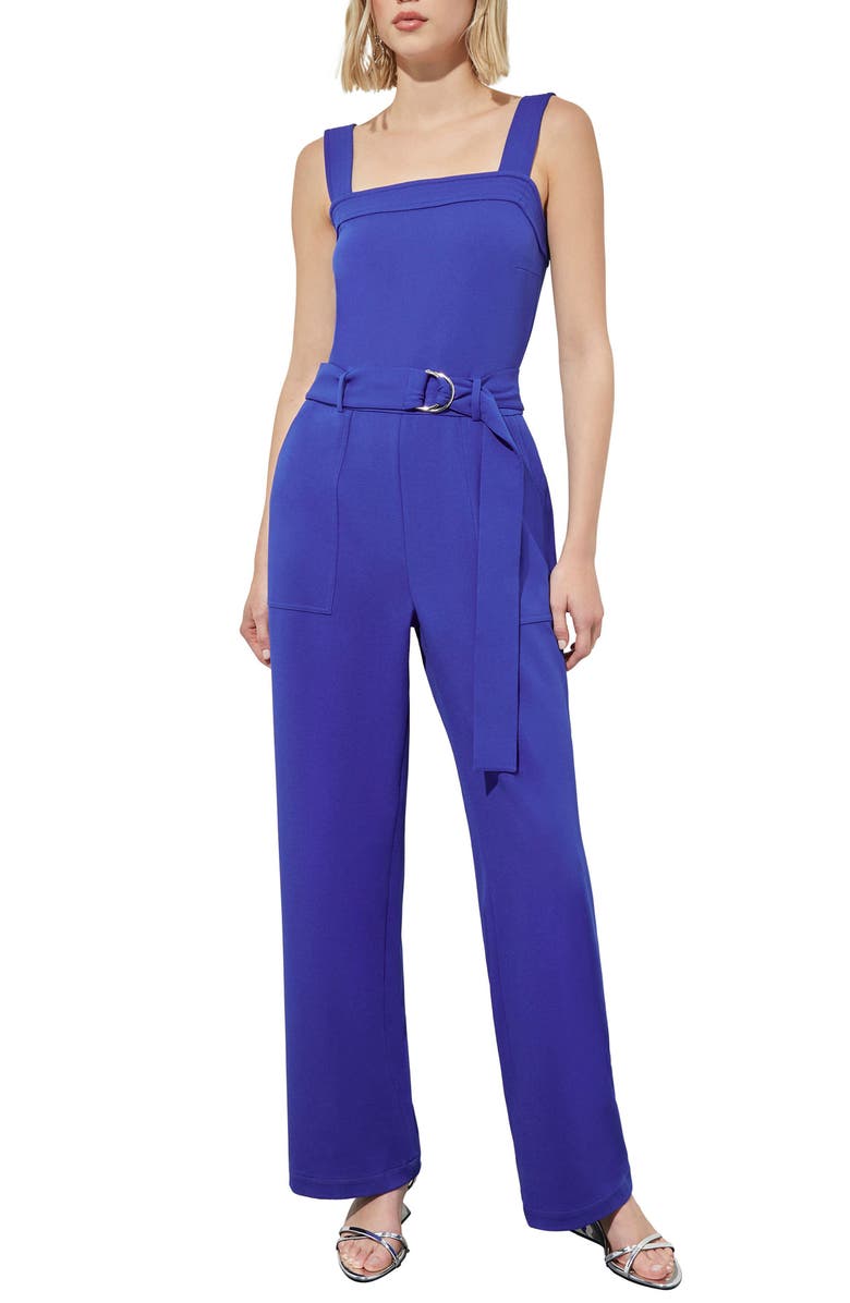 Belted Crepe Jumpsuit, Main, color, Sapphire Sea