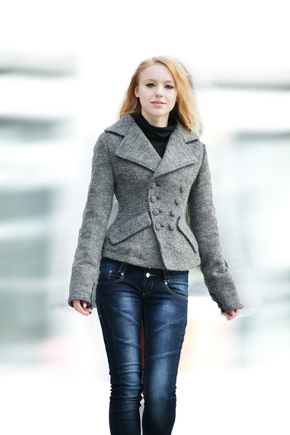 Big Lapel Asymmetric Lappet Wool Coat in Dark Grey For Women - Custom made - NC245