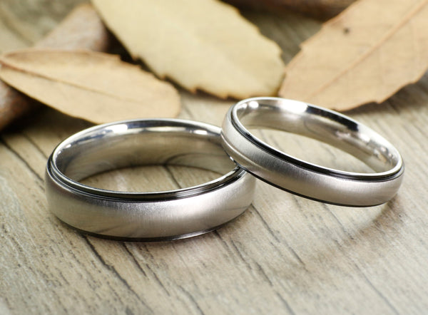 Black Any US UK Size Handmade Groom&Bride His and Her Wedding Engagement Anniversary Titanium Couple Rings Set Court Shape - jringstudio