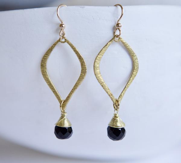 Black Crystal Teardrop Gold Filled Earrings