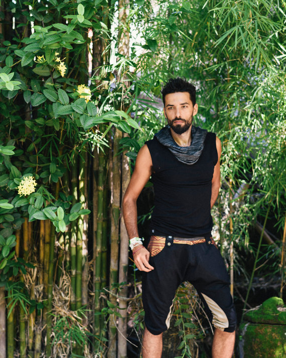 Black Drop crotch capri shorts / Drop crotch shorts men / Drop crotch shorts women/ Low crotch capri with unique details