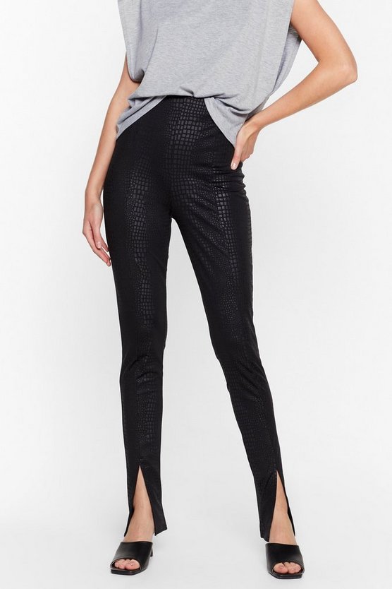 Black Forget Me Croc Slit Hem Skinny Pants
