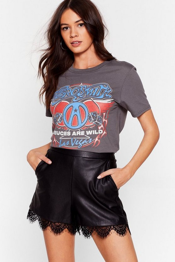 Black Lace Make a Deal High-Waisted Faux Leather Shorts