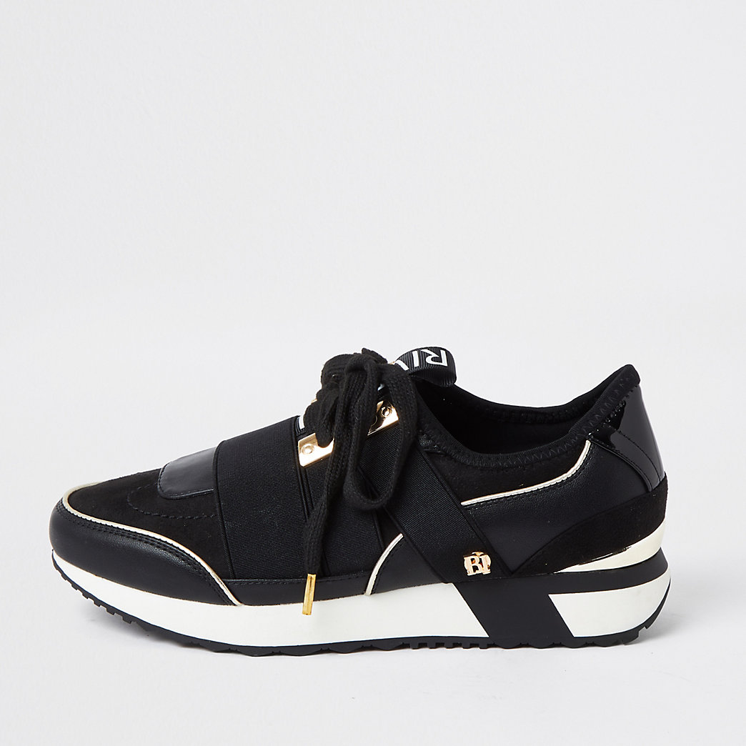 Black lace up runner trainers