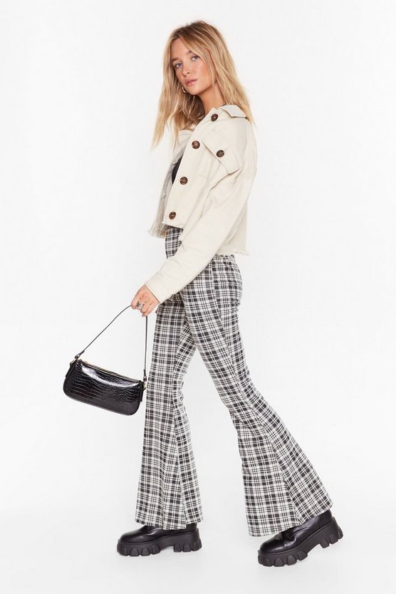 Black On the Flare Occasion Check High-Waisted Pants