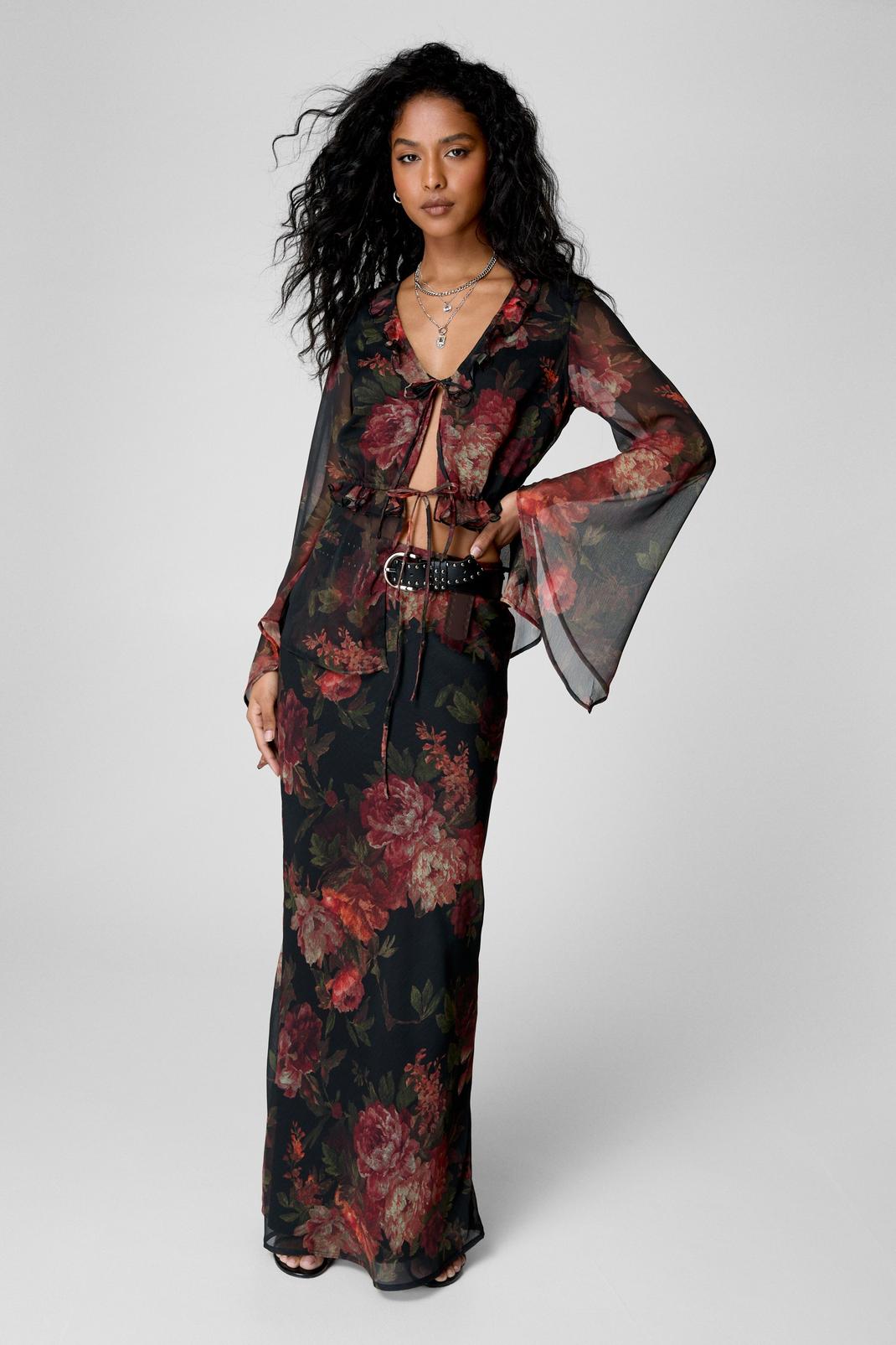 Black Vintage Floral Maxi Skirt