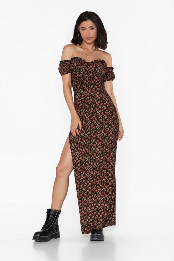 Black Weekend Off-the-Shoulder Floral Maxi Dress