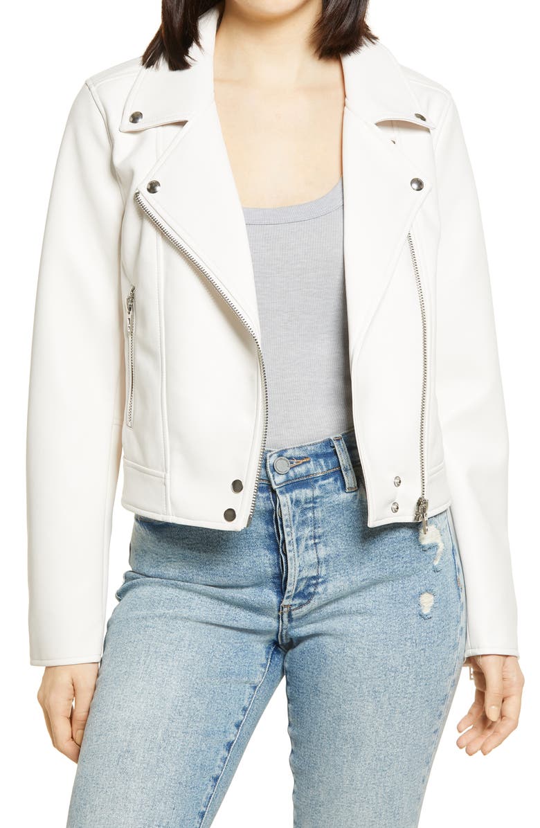 BLANKNYC Good Vibes Faux Leather Moto Jacket, Main, color, PURE MOTIVATION