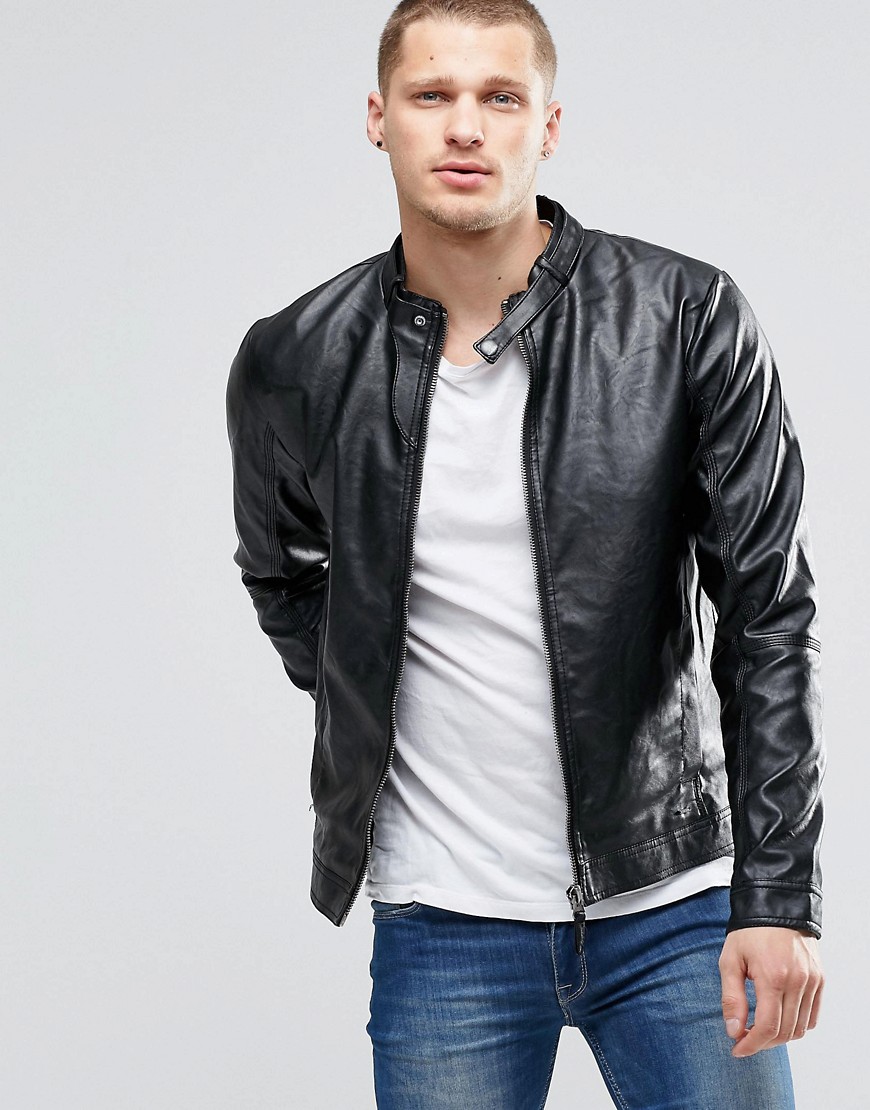 Blend Faux Leather Biker Zip Thru in Black