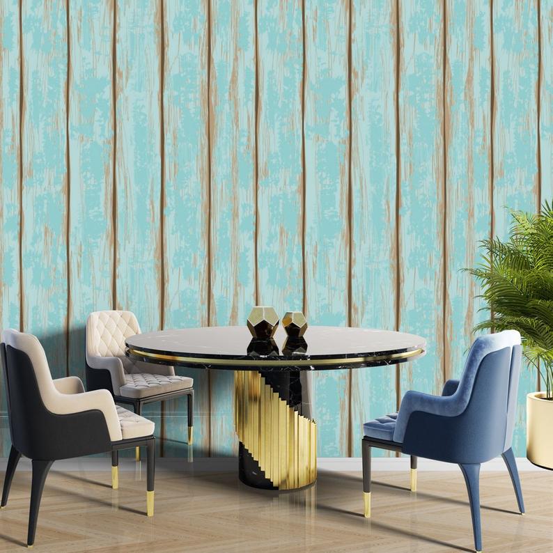 Blue Barn Wood Plank Wallpaper Wall Mural Wall Covering Wall image 0