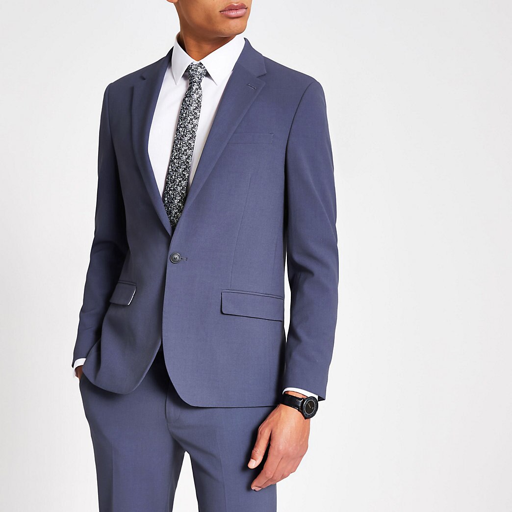 Blue single breasted skinny fit suit jacket