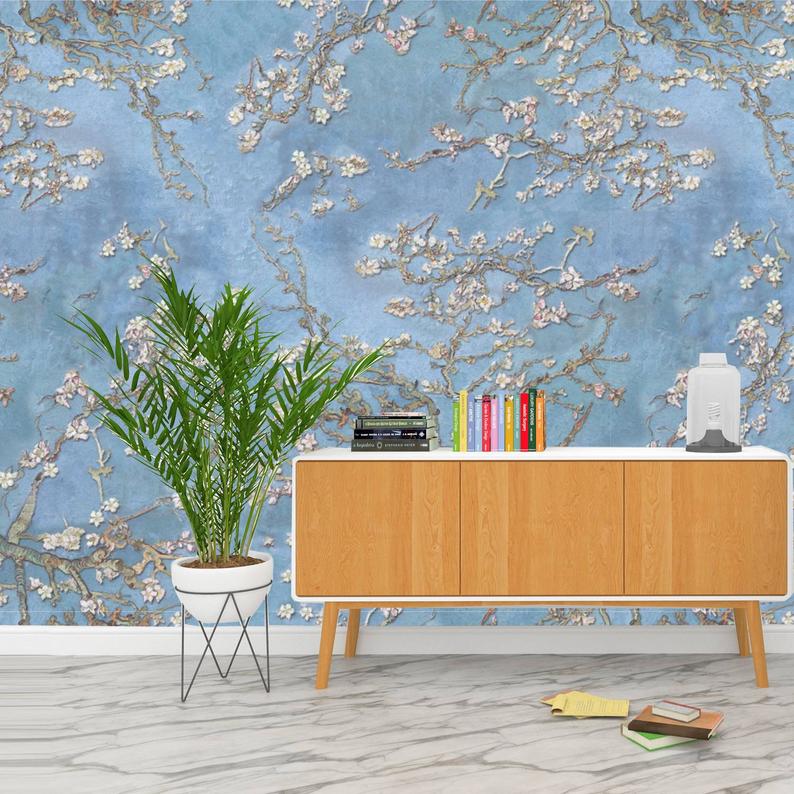 Blue White Watercolor Floral Wallpaper Traditional Non woven image 0
