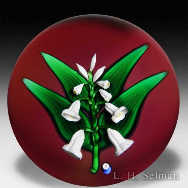Bob Banford Lily-Of-The-Valley On Ruby Ground Paperweight. By Bob Banford