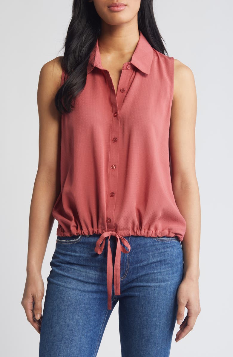 Bobeau Drawstring Waist Sleeveless Button-Up Top, Main, color, Mineral Red