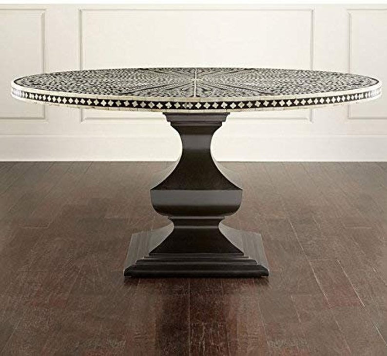 Bone Inlay Floral Big Dining Table Handmade Inlay Furniture image 0