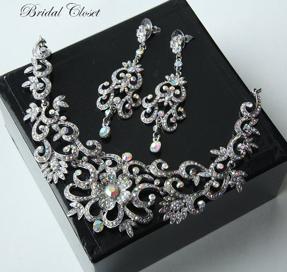 Bridal Set, Crystal Necklace And Earrings Set, Bridal Crystal Set, Bridal Accessory, Wedding Jewelry, Wedding Necklace, Rhinestone Necklace