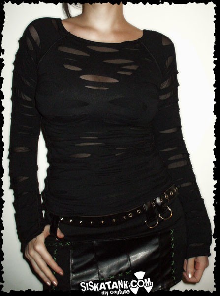 BROKEN - Black Goth Shirt Post Apocalyptic Industrial Long Sleeves Edgy Vampire