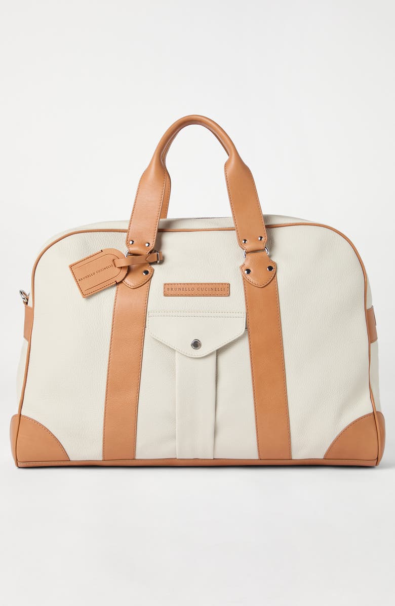 Brunello Cucinelli Grained calfskin street bag, Main, color, Ivory