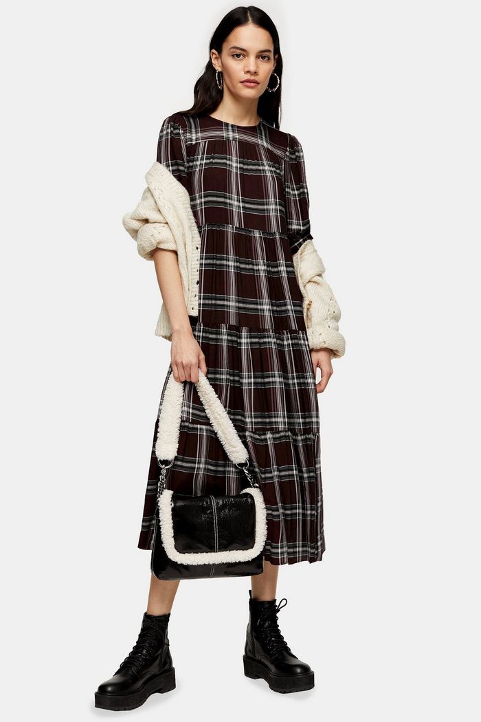 Burgundy Check Chuck On Midi Dress