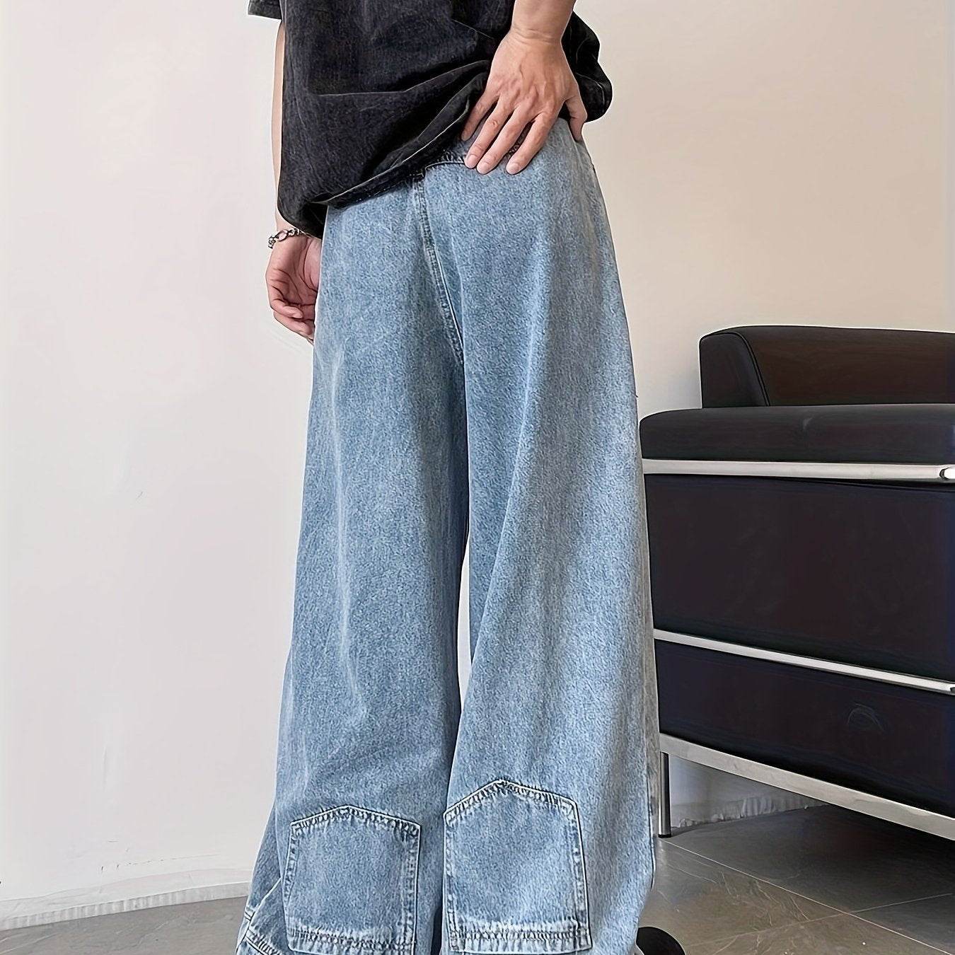 (Button Hole Not Opened) Reverse Pocket Design, High Street Jeans, Men'S And Women'S Versatile, Washed Wide Leg Retro Pants