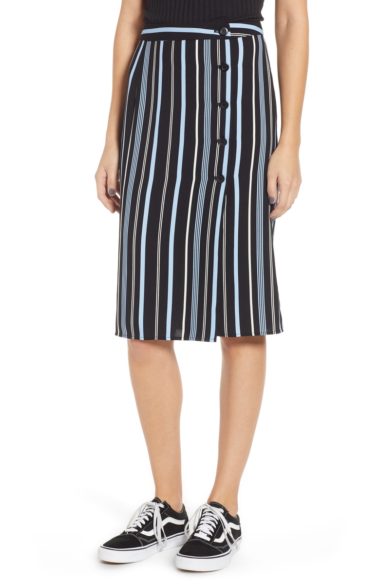 Button Wrap Skirt, Main, color, BLACK MULTI COLORED STRIPE