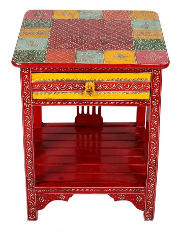 Buy Quatrefoil Hand Painted Red Wood Stool Online At Rajrang