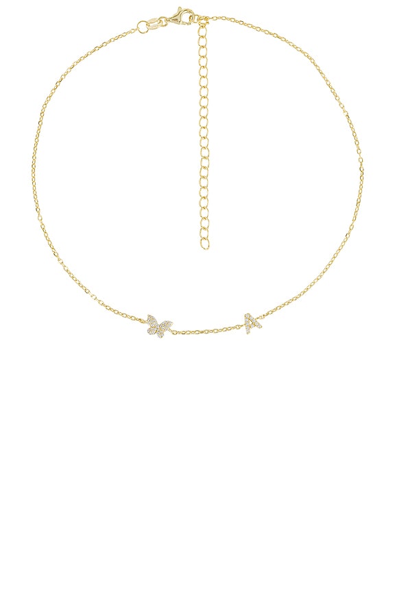 By Adina Eden Pave Butterfly Initial Choker in Gold | REVOLVE