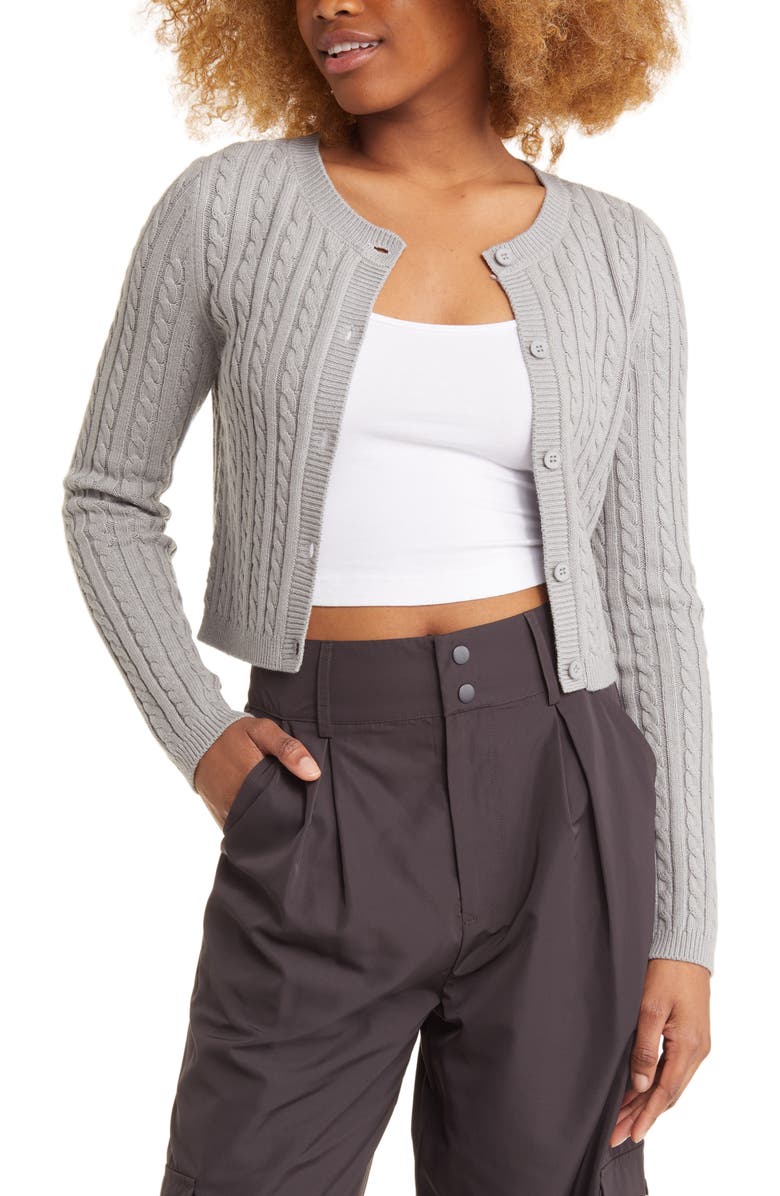 Cable Crewneck Cardigan, Main, color, GREY HEATHER