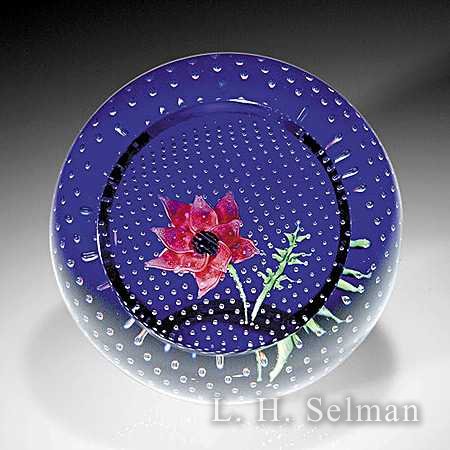 Caithness 'October - Anemone' pink flower on blue/facet by Caithness Glass Inc