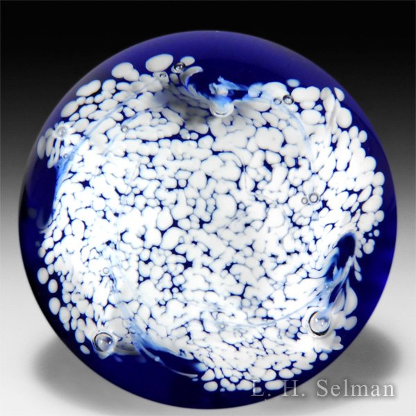 Caithness white-speckled design on translucent blue ground paperweight. by Caithness Glass Inc