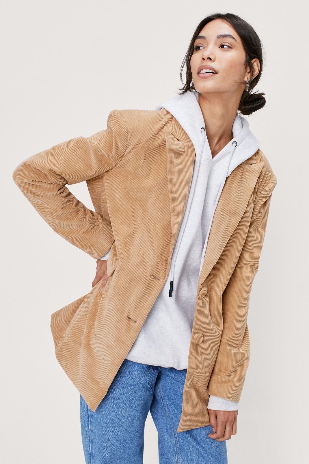 Camel Oversized Corduroy Button Down Blazer image number 1