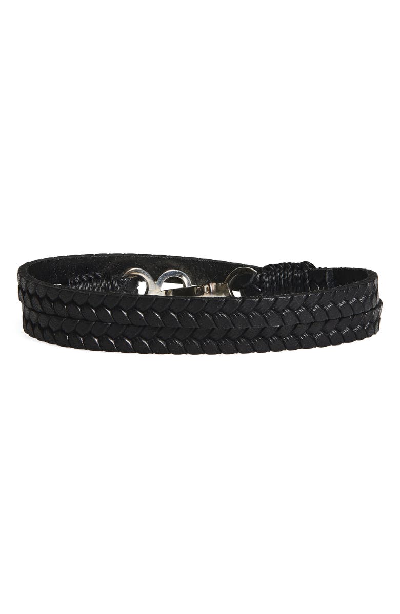 Caputo & Co. Men's Embossed Double Wrap Leather Bracelet, Main, color, Black
