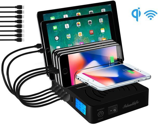 Charging Station for Multiple Devices, 8-Port 1 Wireless Charging Board,Charging Dock, USB Charging Station Compatible with iPhone iPad Mobile Phones Tablets (8 Short Charging Cables) i9 White Black